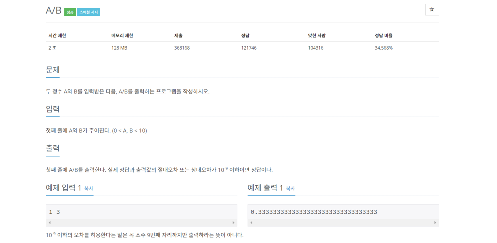 print(a/b)'무니코딩 > 백준' 카테고리의 다른 글